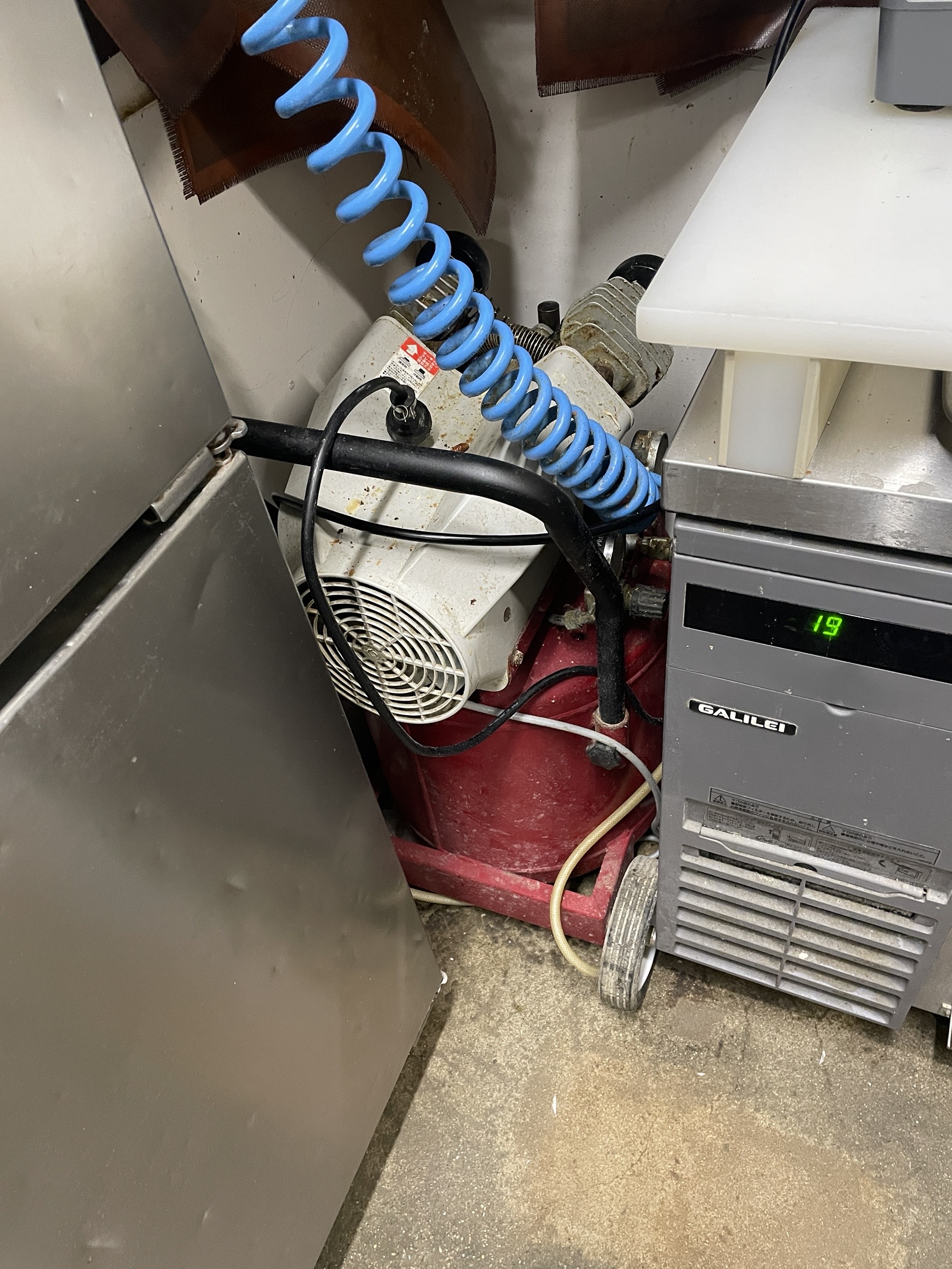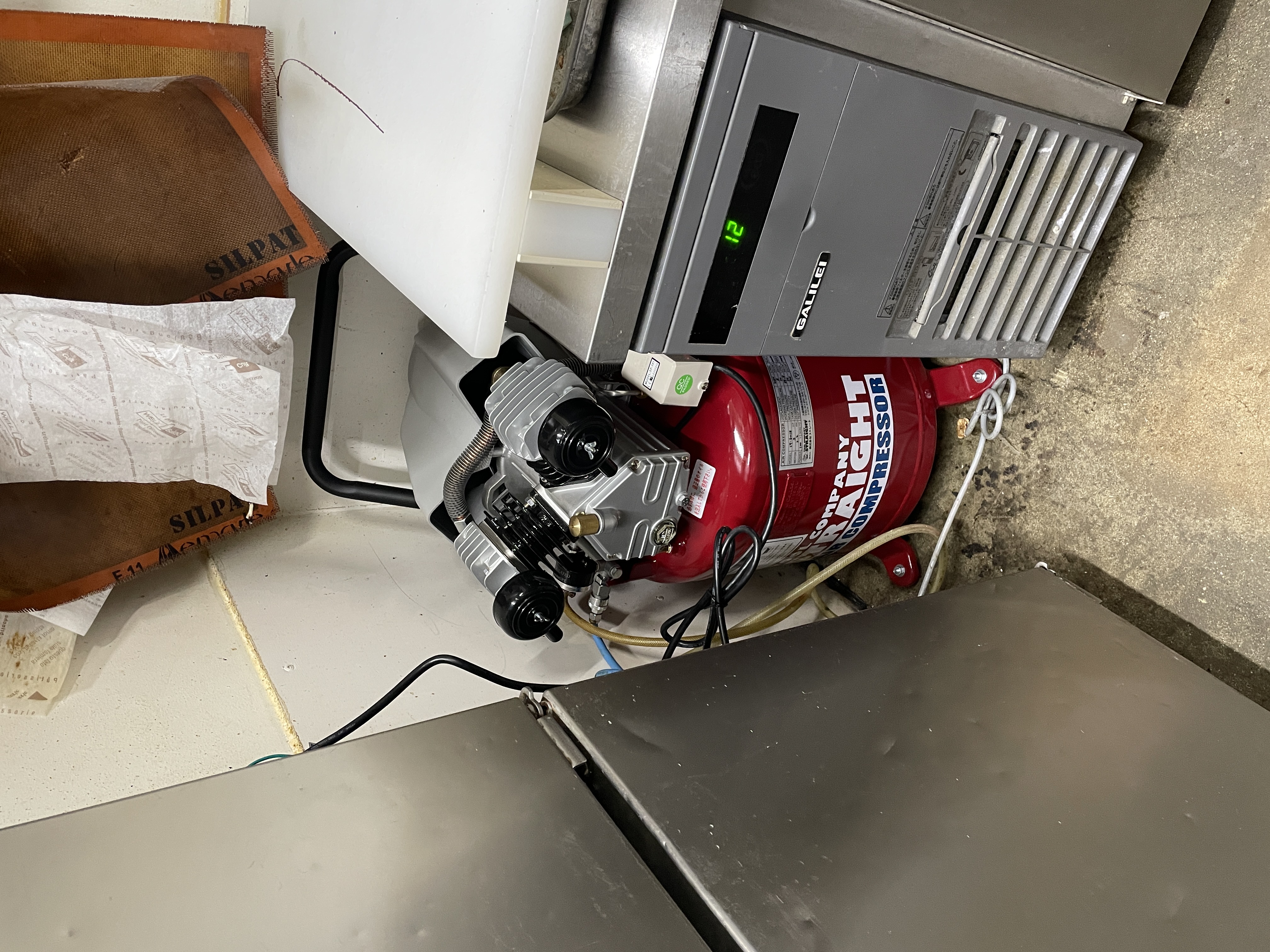 上本町パリゴ(Parigot)さんのエアコンプレッサーの入れ替え作業を行いました。